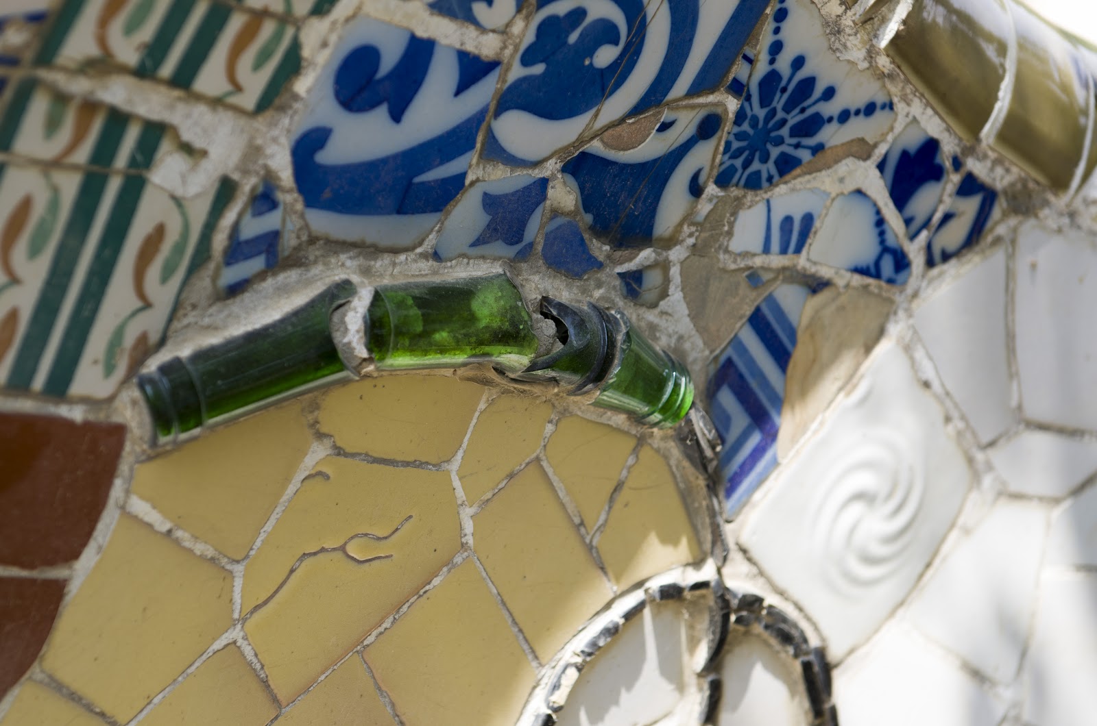 Close up on the eclectic selection of materials used in his mosaic