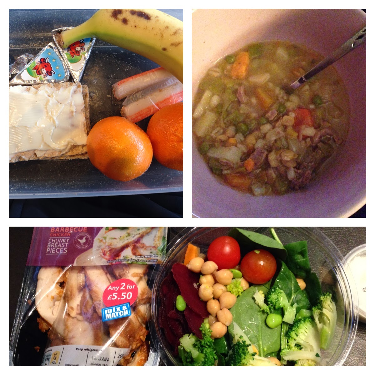 Breakfast: Ryvita and Laughing Cow Light, Crab Sticks and Tangerines (think I ate a Banana too!)